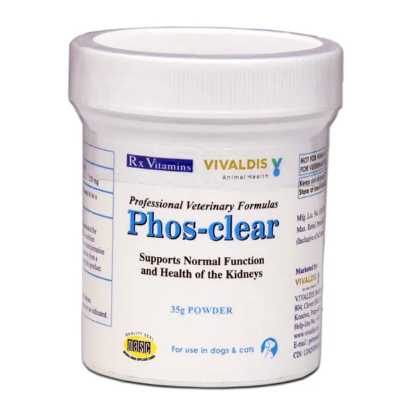 Vivaldis Phos Clear Powder is a highly effective phosphorus-binding supplement designed to support dogs and cats suffering from chronic kidney disease (CKD) and other renal disorders. Excess phosphorus is a major concern in pets with compromised kidney function, and Phos Clear helps reduce phosphorus absorption from food, easing kidney workload and supporting healthier renal performance.